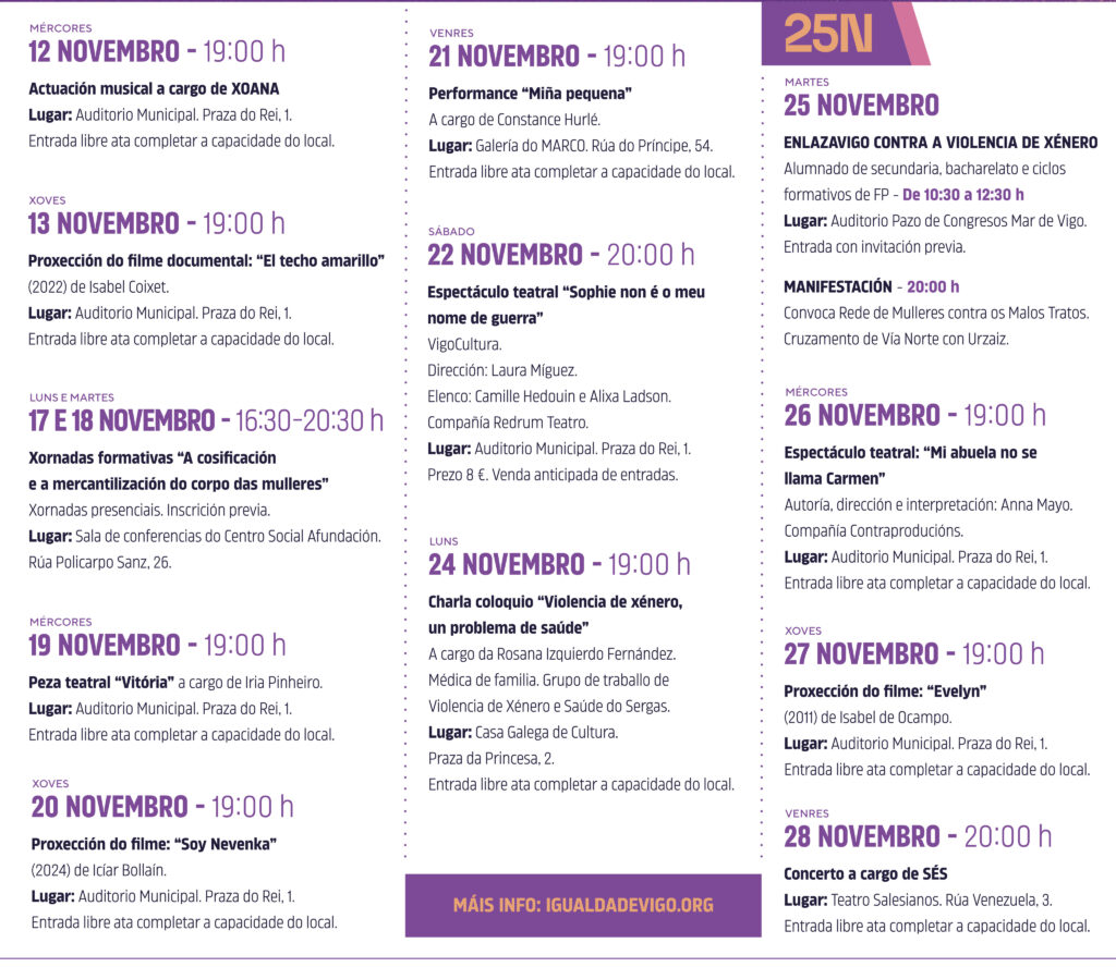 Programa de actos do Concello de Vigo con motivo da conmemoración do 25N